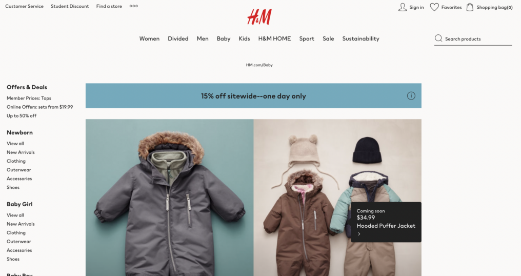 Most parents usually go to H&M for trendy baby and toddler clothing regardless of gender. If you are an affiliate marketer, you can try capitalizing on what they offer in the baby department and promote deals and coupons to your target audience to generate more income per sale.
