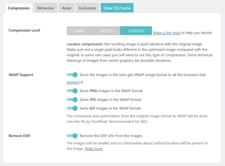 It helps compress images. The images that are served from ShortPixel’s CDN are usually optimized thanks to its robust optimization algorithm. ShortPixel’s optimization algorithm comes in three different levels including Lossless, Glossy and Lossy. We’ll get into the details later on in this review.